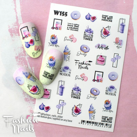 FASHION NAILS Water decal WHITE 155, 1 pz. Istruzioni per l'uso: 1. Effettuare una preparazione standard della lamina ungueale.2. Selezionare il modello appropriato, tagliare l'immagine alla dimensione dell'unghia. 3. Applicare la base,polimerizzare. Applicare uno strato sottile del semipermanente bianco, se richiesto dal design del water decal. Polimerizzare. 4. Applicare uno strato sottile della base. Non polimerizzare. 5. Mettere il water decal su un disco di cotone inumidito con acqua calda (non fredda!) Per circa 10-15 secondi. Spostarlo trasferendo la pellicola sull'unghia. Raddrizzare la pellicola, tirando leggermente verso l'alto il bordo libero. Distendere con cura le pieghe, estraendo i resti di aria e acqua con un panno morbido, un pennello piatto o con le dita. Polimerizzare a tempo pieno. (UV - 2 min, led -30-60 sec). 6. Utilizzando la lima fine, dall'alto verso il basso, rimuovere delicatamente la pellicola in eccesso dal bordo libero dell'unghia. 7. Coprire 2 volte con il top coat, ben sigillando il bordo libero.