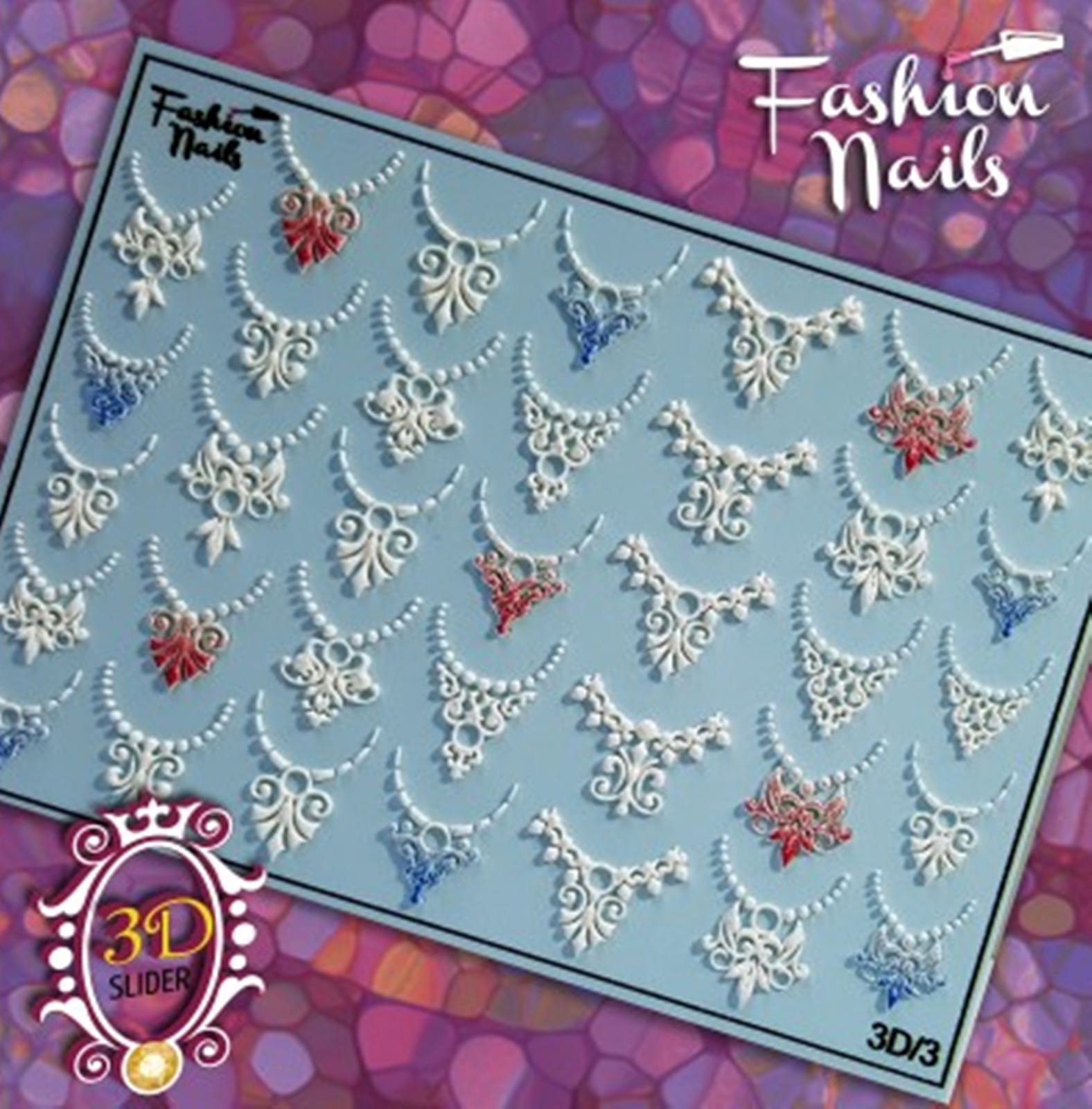 FASHION NAILS Water decal 3D #03, 1 pz. Istruzioni per l'uso: 1. Effettuare una preparazione standard della lamina ungueale.2. Selezionare il modello appropriato, tagliare l'immagine alla dimensione dell'unghia. 3. Applicare la base,polimerizzare. Applicare uno strato sottile del semipermanente bianco, se richiesto dal design del water decal. Polimerizzare. 4. Applicare uno strato sottile della base. Non polimerizzare. 5. Mettere il water decal su un disco di cotone inumidito con acqua calda (non fredda!) Per circa 10-15 secondi. Spostarlo trasferendo la pellicola sull'unghia. Raddrizzare la pellicola, tirando leggermente verso l'alto il bordo libero. Distendere con cura le pieghe, estraendo i resti di aria e acqua con un panno morbido, un pennello piatto o con le dita. Polimerizzare a tempo pieno. (UV - 2 min, led -30-60 sec). 6. Utilizzando la lima fine, dall'alto verso il basso, rimuovere delicatamente la pellicola in eccesso dal bordo libero dell'unghia. 7. Coprire 2 volte con il top coat, ben sigillando il bordo libero.
