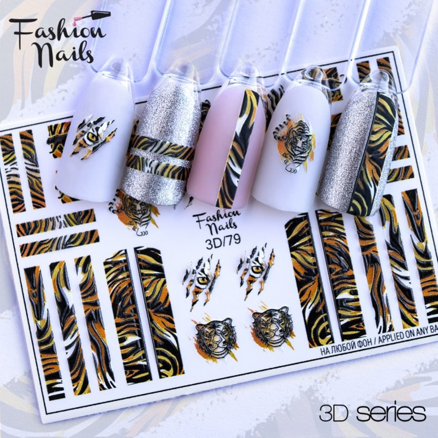 FASHION NAILS Water decal 3D #79, 1 pz. Istruzioni per l'uso: 1. Effettuare una preparazione standard della lamina ungueale.2. Selezionare il modello appropriato, tagliare l'immagine alla dimensione dell'unghia. 3. Applicare la base,polimerizzare. Applicare uno strato sottile del semipermanente bianco, se richiesto dal design del water decal. Polimerizzare. 4. Applicare uno strato sottile della base. Non polimerizzare. 5. Mettere il water decal su un disco di cotone inumidito con acqua calda (non fredda!) Per circa 10-15 secondi. Spostarlo trasferendo la pellicola sull'unghia. Raddrizzare la pellicola, tirando leggermente verso l'alto il bordo libero. Distendere con cura le pieghe, estraendo i resti di aria e acqua con un panno morbido, un pennello piatto o con le dita. Polimerizzare a tempo pieno. (UV - 2 min, led -30-60 sec). 6. Utilizzando la lima fine, dall'alto verso il basso, rimuovere delicatamente la pellicola in eccesso dal bordo libero dell'unghia. 7. Coprire 2 volte con il top coat, ben sigillando il bordo libero.