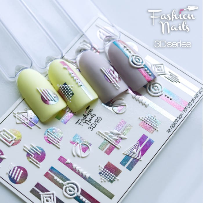 FASHION NAILS Water decal 3D #99, 1 pz. Istruzioni per l'uso: 1. Effettuare una preparazione standard della lamina ungueale.2. Selezionare il modello appropriato, tagliare l'immagine alla dimensione dell'unghia. 3. Applicare la base,polimerizzare. Applicare uno strato sottile del semipermanente bianco, se richiesto dal design del water decal. Polimerizzare. 4. Applicare uno strato sottile della base. Non polimerizzare. 5. Mettere il water decal su un disco di cotone inumidito con acqua calda (non fredda!) Per circa 10-15 secondi. Spostarlo trasferendo la pellicola sull'unghia. Raddrizzare la pellicola, tirando leggermente verso l'alto il bordo libero. Distendere con cura le pieghe, estraendo i resti di aria e acqua con un panno morbido, un pennello piatto o con le dita. Polimerizzare a tempo pieno. (UV - 2 min, led -30-60 sec). 6. Utilizzando la lima fine, dall'alto verso il basso, rimuovere delicatamente la pellicola in eccesso dal bordo libero dell'unghia. 7. Coprire 2 volte con il top coat, ben sigillando il bordo libero.