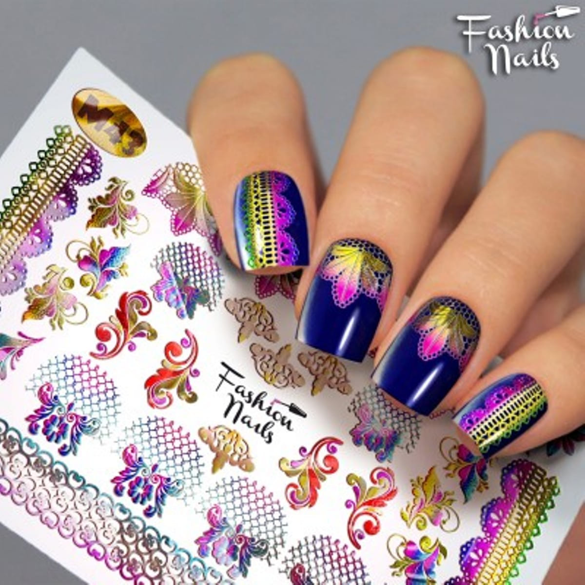 FASHION NAILS Water decal Metallic #043, 1 pz. Istruzioni per l'uso: 1. Effettuare una preparazione standard della lamina ungueale.2. Selezionare il modello appropriato, tagliare l'immagine alla dimensione dell'unghia. 3. Applicare la base,polimerizzare. Applicare uno strato sottile del semipermanente bianco, se richiesto dal design del water decal. Polimerizzare. 4. Applicare uno strato sottile della base. Non polimerizzare. 5. Mettere il water decal su un disco di cotone inumidito con acqua calda (non fredda!) Per circa 10-15 secondi. Spostarlo trasferendo la pellicola sull'unghia. Raddrizzare la pellicola, tirando leggermente verso l'alto il bordo libero. Distendere con cura le pieghe, estraendo i resti di aria e acqua con un panno morbido, un pennello piatto o con le dita. Polimerizzare a tempo pieno. (UV - 2 min, led -30-60 sec). 6. Utilizzando la lima fine, dall'alto verso il basso, rimuovere delicatamente la pellicola in eccesso dal bordo libero dell'unghia. 7. Coprire 2 volte con il top coat, ben sigillando il bordo libero.