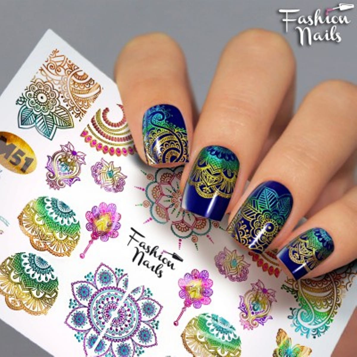 FASHION NAILS Water decal Metallic #051, 1 pz. Istruzioni per l'uso: 1. Effettuare una preparazione standard della lamina ungueale.2. Selezionare il modello appropriato, tagliare l'immagine alla dimensione dell'unghia. 3. Applicare la base,polimerizzare. Applicare uno strato sottile del semipermanente bianco, se richiesto dal design del water decal. Polimerizzare. 4. Applicare uno strato sottile della base. Non polimerizzare. 5. Mettere il water decal su un disco di cotone inumidito con acqua calda (non fredda!) Per circa 10-15 secondi. Spostarlo trasferendo la pellicola sull'unghia. Raddrizzare la pellicola, tirando leggermente verso l'alto il bordo libero. Distendere con cura le pieghe, estraendo i resti di aria e acqua con un panno morbido, un pennello piatto o con le dita. Polimerizzare a tempo pieno. (UV - 2 min, led -30-60 sec). 6. Utilizzando la lima fine, dall'alto verso il basso, rimuovere delicatamente la pellicola in eccesso dal bordo libero dell'unghia. 7. Coprire 2 volte con il top coat, ben sigillando il bordo libero.