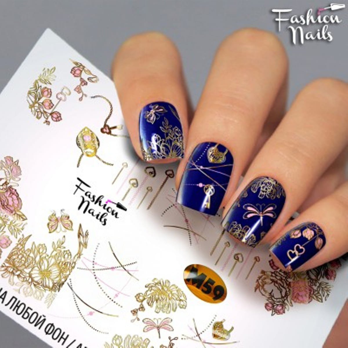 FASHION NAILS Water decal Metallic #059, 1 pz. Istruzioni per l'uso: 1. Effettuare una preparazione standard della lamina ungueale.2. Selezionare il modello appropriato, tagliare l'immagine alla dimensione dell'unghia. 3. Applicare la base,polimerizzare. Applicare uno strato sottile del semipermanente bianco, se richiesto dal design del water decal. Polimerizzare. 4. Applicare uno strato sottile della base. Non polimerizzare. 5. Mettere il water decal su un disco di cotone inumidito con acqua calda (non fredda!) Per circa 10-15 secondi. Spostarlo trasferendo la pellicola sull'unghia. Raddrizzare la pellicola, tirando leggermente verso l'alto il bordo libero. Distendere con cura le pieghe, estraendo i resti di aria e acqua con un panno morbido, un pennello piatto o con le dita. Polimerizzare a tempo pieno. (UV - 2 min, led -30-60 sec). 6. Utilizzando la lima fine, dall'alto verso il basso, rimuovere delicatamente la pellicola in eccesso dal bordo libero dell'unghia. 7. Coprire 2 volte con il top coat, ben sigillando il bordo libero.
