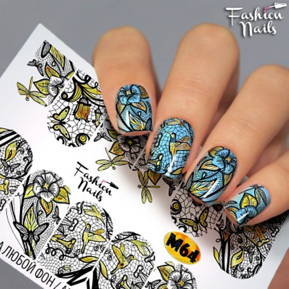 FASHION NAILS Water decal Metallic #064, 1 pz. Istruzioni per l'uso: 1. Effettuare una preparazione standard della lamina ungueale.2. Selezionare il modello appropriato, tagliare l'immagine alla dimensione dell'unghia. 3. Applicare la base,polimerizzare. Applicare uno strato sottile del semipermanente bianco, se richiesto dal design del water decal. Polimerizzare. 4. Applicare uno strato sottile della base. Non polimerizzare. 5. Mettere il water decal su un disco di cotone inumidito con acqua calda (non fredda!) Per circa 10-15 secondi. Spostarlo trasferendo la pellicola sull'unghia. Raddrizzare la pellicola, tirando leggermente verso l'alto il bordo libero. Distendere con cura le pieghe, estraendo i resti di aria e acqua con un panno morbido, un pennello piatto o con le dita. Polimerizzare a tempo pieno. (UV - 2 min, led -30-60 sec). 6. Utilizzando la lima fine, dall'alto verso il basso, rimuovere delicatamente la pellicola in eccesso dal bordo libero dell'unghia. 7. Coprire 2 volte con il top coat, ben sigillando il bordo libero.