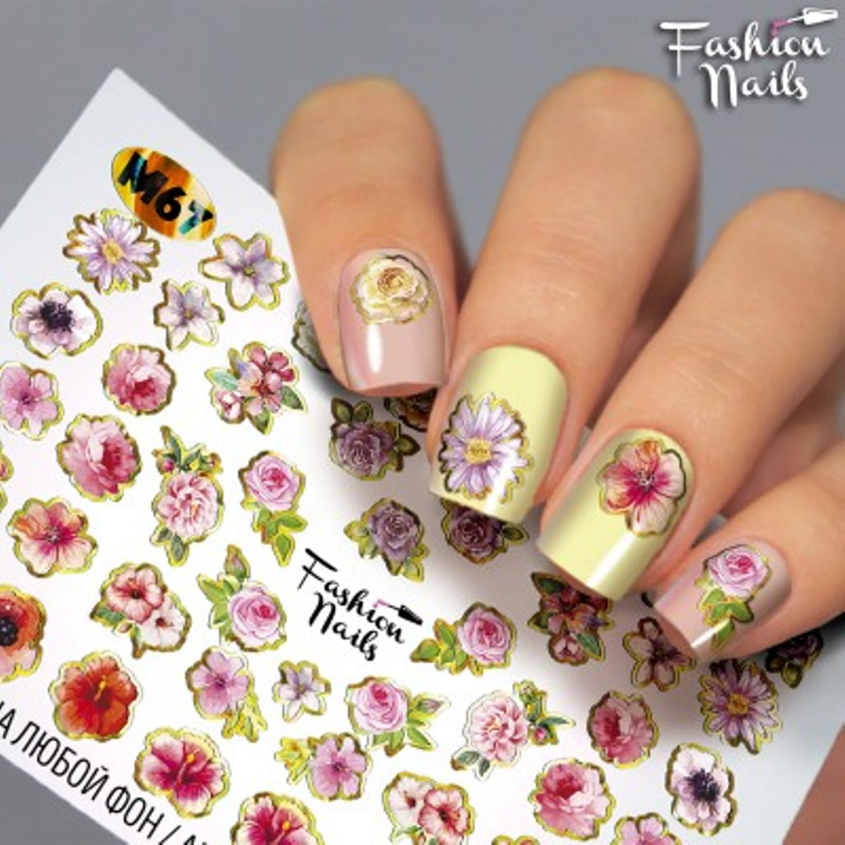 FASHION NAILS Water decal Metallic #067, 1 pz. Istruzioni per l'uso: 1. Effettuare una preparazione standard della lamina ungueale.2. Selezionare il modello appropriato, tagliare l'immagine alla dimensione dell'unghia. 3. Applicare la base,polimerizzare. Applicare uno strato sottile del semipermanente bianco, se richiesto dal design del water decal. Polimerizzare. 4. Applicare uno strato sottile della base. Non polimerizzare. 5. Mettere il water decal su un disco di cotone inumidito con acqua calda (non fredda!) Per circa 10-15 secondi. Spostarlo trasferendo la pellicola sull'unghia. Raddrizzare la pellicola, tirando leggermente verso l'alto il bordo libero. Distendere con cura le pieghe, estraendo i resti di aria e acqua con un panno morbido, un pennello piatto o con le dita. Polimerizzare a tempo pieno. (UV - 2 min, led -30-60 sec). 6. Utilizzando la lima fine, dall'alto verso il basso, rimuovere delicatamente la pellicola in eccesso dal bordo libero dell'unghia. 7. Coprire 2 volte con il top coat, ben sigillando il bordo libero.