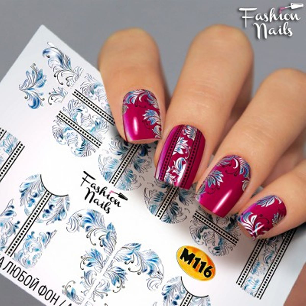 FASHION NAILS Water decal Metallic #116, 1 pz. Istruzioni per l'uso: 1. Effettuare una preparazione standard della lamina ungueale.2. Selezionare il modello appropriato, tagliare l'immagine alla dimensione dell'unghia. 3. Applicare la base,polimerizzare. Applicare uno strato sottile del semipermanente bianco, se richiesto dal design del water decal. Polimerizzare. 4. Applicare uno strato sottile della base. Non polimerizzare. 5. Mettere il water decal su un disco di cotone inumidito con acqua calda (non fredda!) Per circa 10-15 secondi. Spostarlo trasferendo la pellicola sull'unghia. Raddrizzare la pellicola, tirando leggermente verso l'alto il bordo libero. Distendere con cura le pieghe, estraendo i resti di aria e acqua con un panno morbido, un pennello piatto o con le dita. Polimerizzare a tempo pieno. (UV - 2 min, led -30-60 sec). 6. Utilizzando la lima fine, dall'alto verso il basso, rimuovere delicatamente la pellicola in eccesso dal bordo libero dell'unghia. 7. Coprire 2 volte con il top coat, ben sigillando il bordo libero.