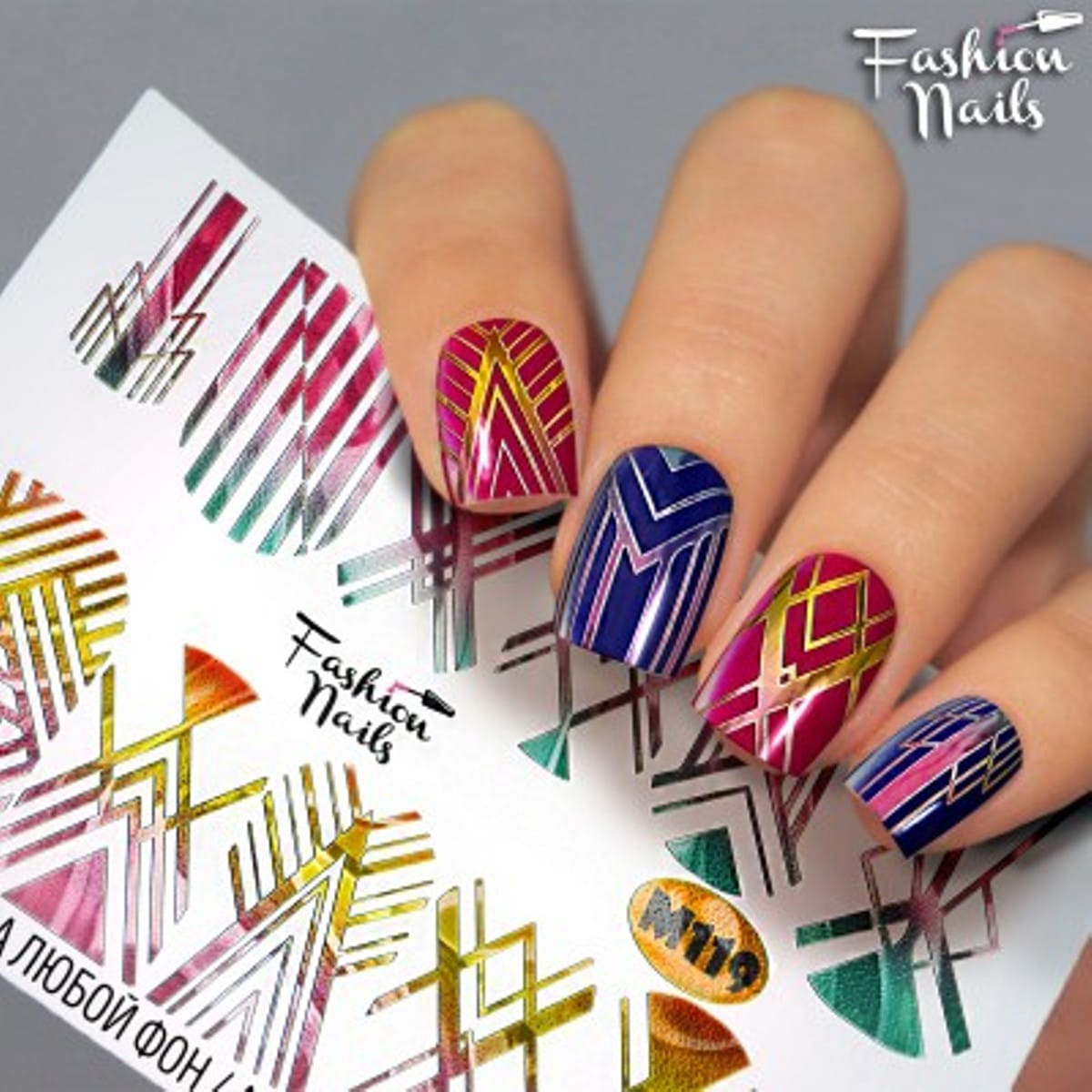 FASHION NAILS Water decal Metallic #119, 1 pz. Istruzioni per l'uso: 1. Effettuare una preparazione standard della lamina ungueale.2. Selezionare il modello appropriato, tagliare l'immagine alla dimensione dell'unghia. 3. Applicare la base,polimerizzare. Applicare uno strato sottile del semipermanente bianco, se richiesto dal design del water decal. Polimerizzare. 4. Applicare uno strato sottile della base. Non polimerizzare. 5. Mettere il water decal su un disco di cotone inumidito con acqua calda (non fredda!) Per circa 10-15 secondi. Spostarlo trasferendo la pellicola sull'unghia. Raddrizzare la pellicola, tirando leggermente verso l'alto il bordo libero. Distendere con cura le pieghe, estraendo i resti di aria e acqua con un panno morbido, un pennello piatto o con le dita. Polimerizzare a tempo pieno. (UV - 2 min, led -30-60 sec). 6. Utilizzando la lima fine, dall'alto verso il basso, rimuovere delicatamente la pellicola in eccesso dal bordo libero dell'unghia. 7. Coprire 2 volte con il top coat, ben sigillando il bordo libero.