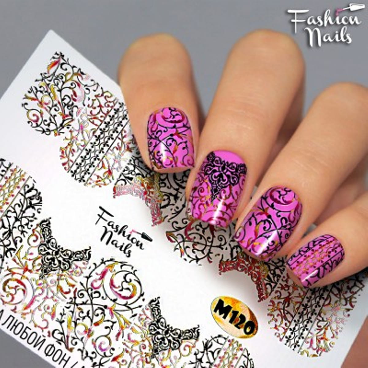 FASHION NAILS Water decal Metallic #120, 1 pz. Istruzioni per l'uso: 1. Effettuare una preparazione standard della lamina ungueale.2. Selezionare il modello appropriato, tagliare l'immagine alla dimensione dell'unghia. 3. Applicare la base,polimerizzare. Applicare uno strato sottile del semipermanente bianco, se richiesto dal design del water decal. Polimerizzare. 4. Applicare uno strato sottile della base. Non polimerizzare. 5. Mettere il water decal su un disco di cotone inumidito con acqua calda (non fredda!) Per circa 10-15 secondi. Spostarlo trasferendo la pellicola sull'unghia. Raddrizzare la pellicola, tirando leggermente verso l'alto il bordo libero. Distendere con cura le pieghe, estraendo i resti di aria e acqua con un panno morbido, un pennello piatto o con le dita. Polimerizzare a tempo pieno. (UV - 2 min, led -30-60 sec). 6. Utilizzando la lima fine, dall'alto verso il basso, rimuovere delicatamente la pellicola in eccesso dal bordo libero dell'unghia. 7. Coprire 2 volte con il top coat, ben sigillando il bordo libero.