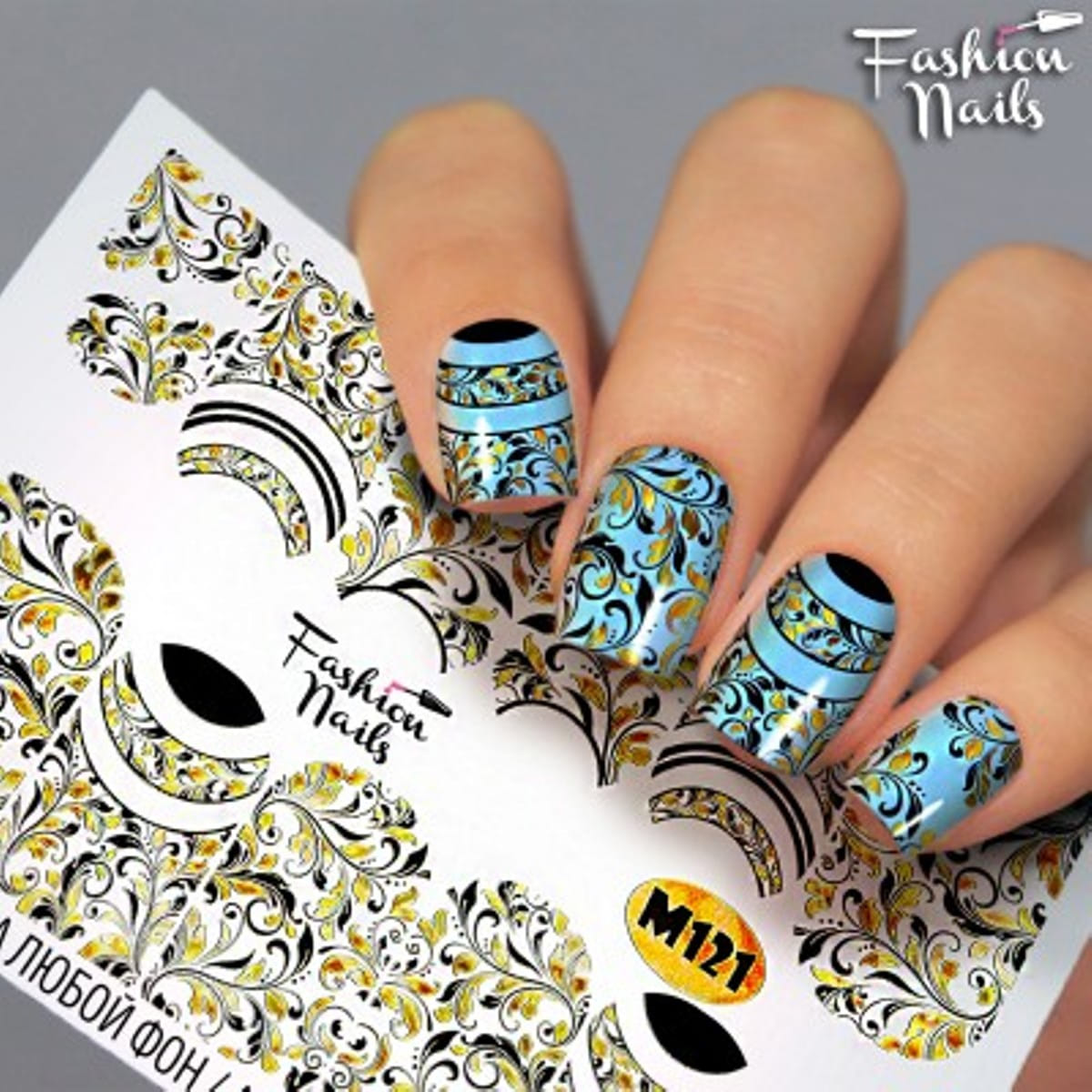 FASHION NAILS Water decal Metallic #121, 1 pz. Istruzioni per l'uso: 1. Effettuare una preparazione standard della lamina ungueale.2. Selezionare il modello appropriato, tagliare l'immagine alla dimensione dell'unghia. 3. Applicare la base,polimerizzare. Applicare uno strato sottile del semipermanente bianco, se richiesto dal design del water decal. Polimerizzare. 4. Applicare uno strato sottile della base. Non polimerizzare. 5. Mettere il water decal su un disco di cotone inumidito con acqua calda (non fredda!) Per circa 10-15 secondi. Spostarlo trasferendo la pellicola sull'unghia. Raddrizzare la pellicola, tirando leggermente verso l'alto il bordo libero. Distendere con cura le pieghe, estraendo i resti di aria e acqua con un panno morbido, un pennello piatto o con le dita. Polimerizzare a tempo pieno. (UV - 2 min, led -30-60 sec). 6. Utilizzando la lima fine, dall'alto verso il basso, rimuovere delicatamente la pellicola in eccesso dal bordo libero dell'unghia. 7. Coprire 2 volte con il top coat, ben sigillando il bordo libero.