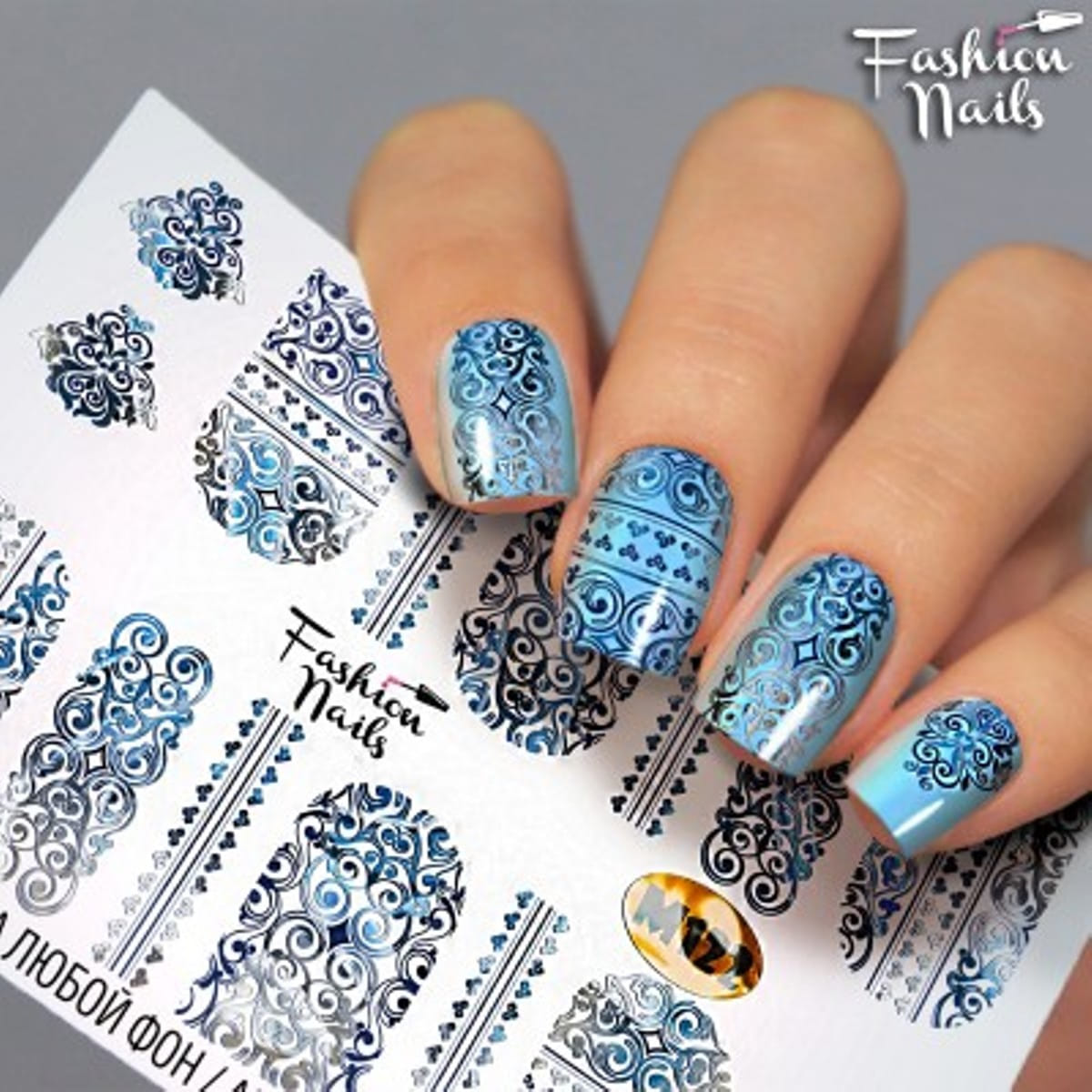 FASHION NAILS Water decal Metallic #122, 1 pz. Istruzioni per l'uso: 1. Effettuare una preparazione standard della lamina ungueale.2. Selezionare il modello appropriato, tagliare l'immagine alla dimensione dell'unghia. 3. Applicare la base,polimerizzare. Applicare uno strato sottile del semipermanente bianco, se richiesto dal design del water decal. Polimerizzare. 4. Applicare uno strato sottile della base. Non polimerizzare. 5. Mettere il water decal su un disco di cotone inumidito con acqua calda (non fredda!) Per circa 10-15 secondi. Spostarlo trasferendo la pellicola sull'unghia. Raddrizzare la pellicola, tirando leggermente verso l'alto il bordo libero. Distendere con cura le pieghe, estraendo i resti di aria e acqua con un panno morbido, un pennello piatto o con le dita. Polimerizzare a tempo pieno. (UV - 2 min, led -30-60 sec). 6. Utilizzando la lima fine, dall'alto verso il basso, rimuovere delicatamente la pellicola in eccesso dal bordo libero dell'unghia. 7. Coprire 2 volte con il top coat, ben sigillando il bordo libero.