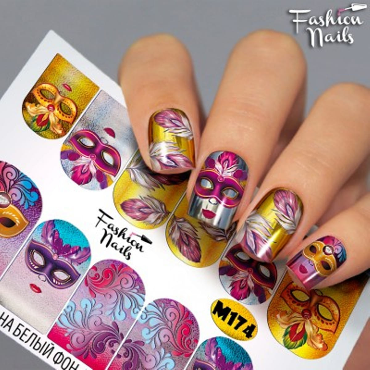 FASHION NAILS Water decal Metallic #174, 1 pz. Istruzioni per l'uso: 1. Effettuare una preparazione standard della lamina ungueale.2. Selezionare il modello appropriato, tagliare l'immagine alla dimensione dell'unghia. 3. Applicare la base,polimerizzare. Applicare uno strato sottile del semipermanente bianco, se richiesto dal design del water decal. Polimerizzare. 4. Applicare uno strato sottile della base. Non polimerizzare. 5. Mettere il water decal su un disco di cotone inumidito con acqua calda (non fredda!) Per circa 10-15 secondi. Spostarlo trasferendo la pellicola sull'unghia. Raddrizzare la pellicola, tirando leggermente verso l'alto il bordo libero. Distendere con cura le pieghe, estraendo i resti di aria e acqua con un panno morbido, un pennello piatto o con le dita. Polimerizzare a tempo pieno. (UV - 2 min, led -30-60 sec). 6. Utilizzando la lima fine, dall'alto verso il basso, rimuovere delicatamente la pellicola in eccesso dal bordo libero dell'unghia. 7. Coprire 2 volte con il top coat, ben sigillando il bordo libero.
