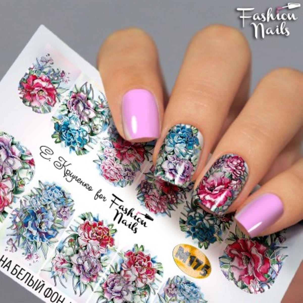 FASHION NAILS Water decal Metallic #175, 1 pz. Istruzioni per l'uso: 1. Effettuare una preparazione standard della lamina ungueale.2. Selezionare il modello appropriato, tagliare l'immagine alla dimensione dell'unghia. 3. Applicare la base,polimerizzare. Applicare uno strato sottile del semipermanente bianco, se richiesto dal design del water decal. Polimerizzare. 4. Applicare uno strato sottile della base. Non polimerizzare. 5. Mettere il water decal su un disco di cotone inumidito con acqua calda (non fredda!) Per circa 10-15 secondi. Spostarlo trasferendo la pellicola sull'unghia. Raddrizzare la pellicola, tirando leggermente verso l'alto il bordo libero. Distendere con cura le pieghe, estraendo i resti di aria e acqua con un panno morbido, un pennello piatto o con le dita. Polimerizzare a tempo pieno. (UV - 2 min, led -30-60 sec). 6. Utilizzando la lima fine, dall'alto verso il basso, rimuovere delicatamente la pellicola in eccesso dal bordo libero dell'unghia. 7. Coprire 2 volte con il top coat, ben sigillando il bordo libero.
