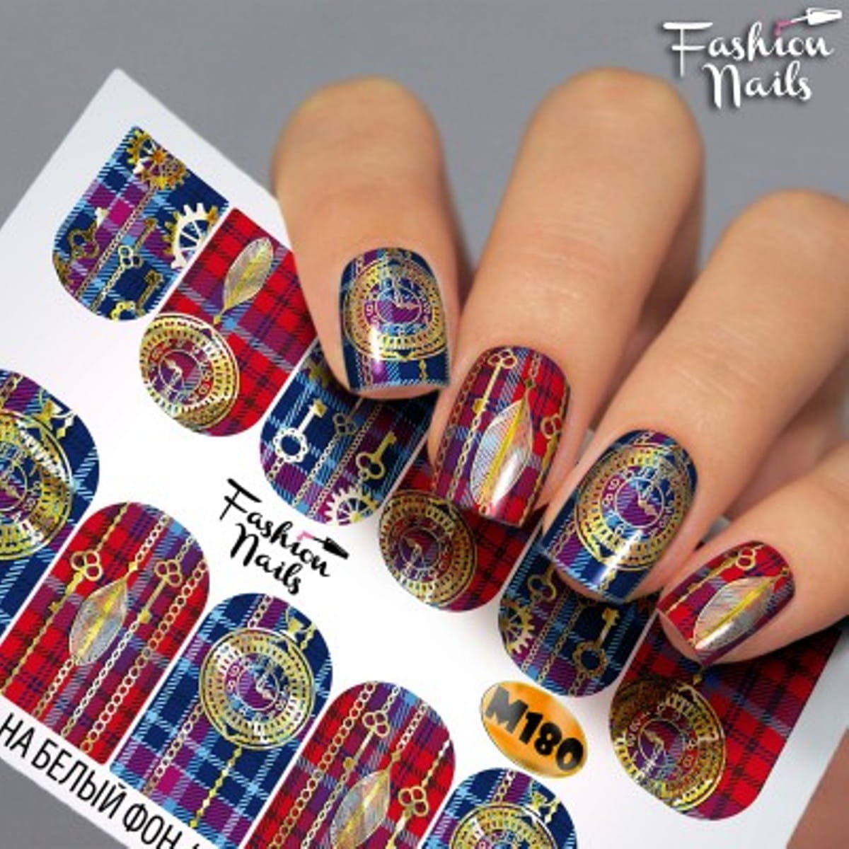 FASHION NAILS Water decal Metallic #180, 1 pz. Istruzioni per l'uso: 1. Effettuare una preparazione standard della lamina ungueale.2. Selezionare il modello appropriato, tagliare l'immagine alla dimensione dell'unghia. 3. Applicare la base,polimerizzare. Applicare uno strato sottile del semipermanente bianco, se richiesto dal design del water decal. Polimerizzare. 4. Applicare uno strato sottile della base. Non polimerizzare. 5. Mettere il water decal su un disco di cotone inumidito con acqua calda (non fredda!) Per circa 10-15 secondi. Spostarlo trasferendo la pellicola sull'unghia. Raddrizzare la pellicola, tirando leggermente verso l'alto il bordo libero. Distendere con cura le pieghe, estraendo i resti di aria e acqua con un panno morbido, un pennello piatto o con le dita. Polimerizzare a tempo pieno. (UV - 2 min, led -30-60 sec). 6. Utilizzando la lima fine, dall'alto verso il basso, rimuovere delicatamente la pellicola in eccesso dal bordo libero dell'unghia. 7. Coprire 2 volte con il top coat, ben sigillando il bordo libero.