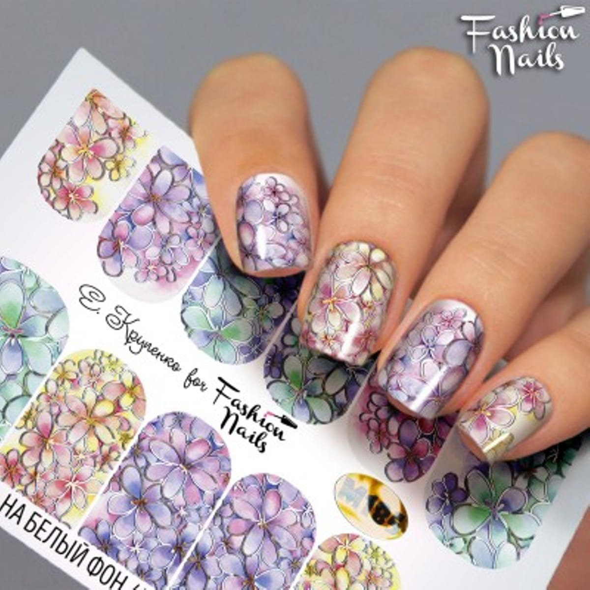 FASHION NAILS Water decal Metallic #185, 1 pz. Istruzioni per l'uso: 1. Effettuare una preparazione standard della lamina ungueale.2. Selezionare il modello appropriato, tagliare l'immagine alla dimensione dell'unghia. 3. Applicare la base,polimerizzare. Applicare uno strato sottile del semipermanente bianco, se richiesto dal design del water decal. Polimerizzare. 4. Applicare uno strato sottile della base. Non polimerizzare. 5. Mettere il water decal su un disco di cotone inumidito con acqua calda (non fredda!) Per circa 10-15 secondi. Spostarlo trasferendo la pellicola sull'unghia. Raddrizzare la pellicola, tirando leggermente verso l'alto il bordo libero. Distendere con cura le pieghe, estraendo i resti di aria e acqua con un panno morbido, un pennello piatto o con le dita. Polimerizzare a tempo pieno. (UV - 2 min, led -30-60 sec). 6. Utilizzando la lima fine, dall'alto verso il basso, rimuovere delicatamente la pellicola in eccesso dal bordo libero dell'unghia. 7. Coprire 2 volte con il top coat, ben sigillando il bordo libero.