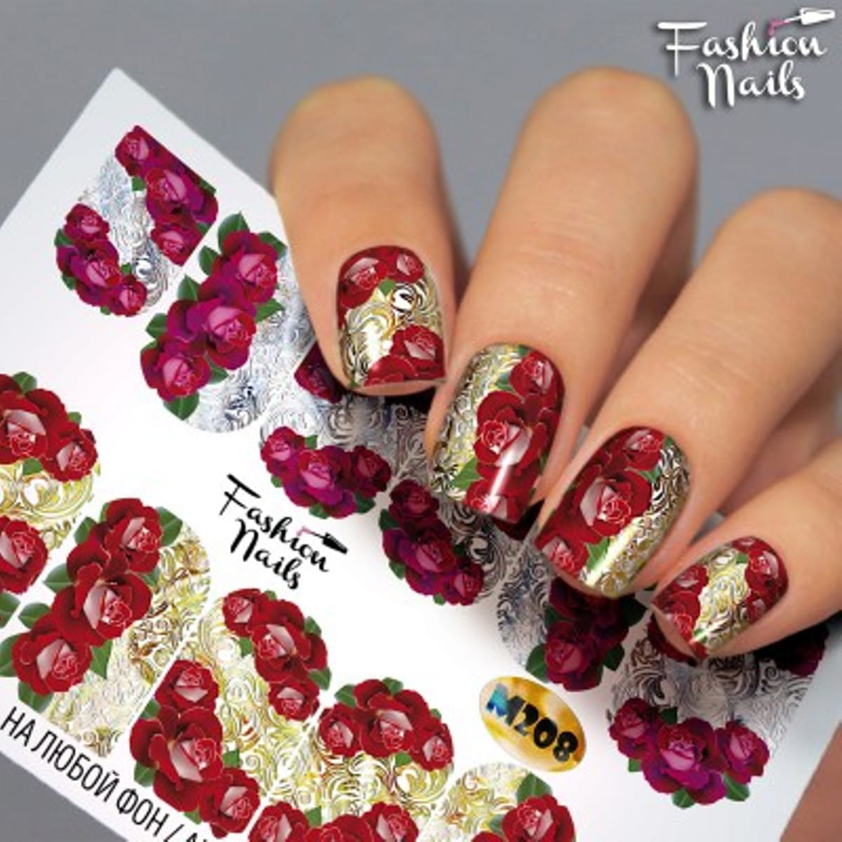 FASHION NAILS Water decal Metallic #208, 1 pz. Istruzioni per l'uso: 1. Effettuare una preparazione standard della lamina ungueale.2. Selezionare il modello appropriato, tagliare l'immagine alla dimensione dell'unghia. 3. Applicare la base,polimerizzare. Applicare uno strato sottile del semipermanente bianco, se richiesto dal design del water decal. Polimerizzare. 4. Applicare uno strato sottile della base. Non polimerizzare. 5. Mettere il water decal su un disco di cotone inumidito con acqua calda (non fredda!) Per circa 10-15 secondi. Spostarlo trasferendo la pellicola sull'unghia. Raddrizzare la pellicola, tirando leggermente verso l'alto il bordo libero. Distendere con cura le pieghe, estraendo i resti di aria e acqua con un panno morbido, un pennello piatto o con le dita. Polimerizzare a tempo pieno. (UV - 2 min, led -30-60 sec). 6. Utilizzando la lima fine, dall'alto verso il basso, rimuovere delicatamente la pellicola in eccesso dal bordo libero dell'unghia. 7. Coprire 2 volte con il top coat, ben sigillando il bordo libero.