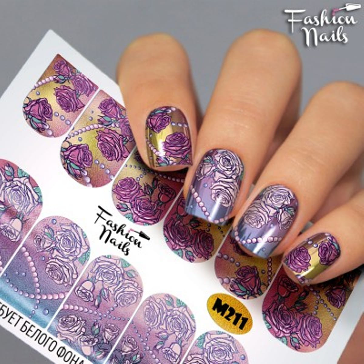 FASHION NAILS Water decal Metallic #211, 1 pz. Istruzioni per l'uso: 1. Effettuare una preparazione standard della lamina ungueale.2. Selezionare il modello appropriato, tagliare l'immagine alla dimensione dell'unghia. 3. Applicare la base,polimerizzare. Applicare uno strato sottile del semipermanente bianco, se richiesto dal design del water decal. Polimerizzare. 4. Applicare uno strato sottile della base. Non polimerizzare. 5. Mettere il water decal su un disco di cotone inumidito con acqua calda (non fredda!) Per circa 10-15 secondi. Spostarlo trasferendo la pellicola sull'unghia. Raddrizzare la pellicola, tirando leggermente verso l'alto il bordo libero. Distendere con cura le pieghe, estraendo i resti di aria e acqua con un panno morbido, un pennello piatto o con le dita. Polimerizzare a tempo pieno. (UV - 2 min, led -30-60 sec). 6. Utilizzando la lima fine, dall'alto verso il basso, rimuovere delicatamente la pellicola in eccesso dal bordo libero dell'unghia. 7. Coprire 2 volte con il top coat, ben sigillando il bordo libero.