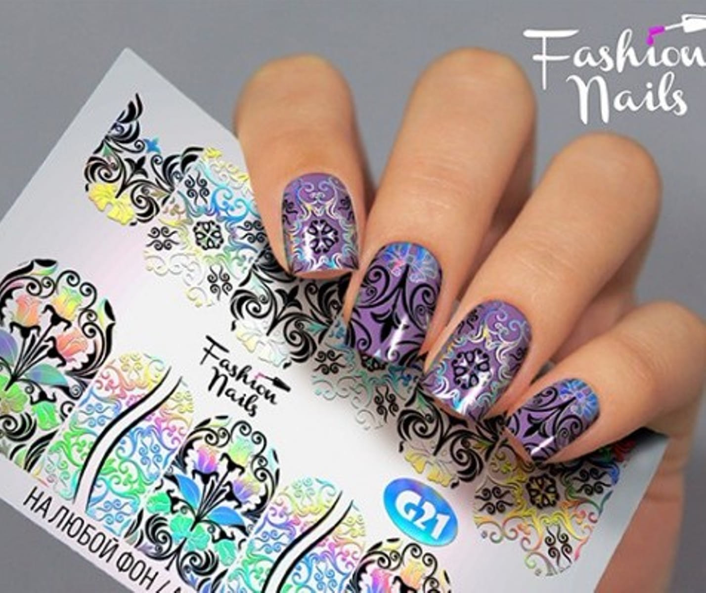 FASHION NAILS Water decal Galaxy 21, 1 pz. Istruzioni per l'uso: 1. Effettuare una preparazione standard della lamina ungueale.2. Selezionare il modello appropriato, tagliare l'immagine alla dimensione dell'unghia. 3. Applicare la base,polimerizzare. Applicare uno strato sottile del semipermanente bianco, se richiesto dal design del water decal. Polimerizzare. 4. Applicare uno strato sottile della base. Non polimerizzare. 5. Mettere il water decal su un disco di cotone inumidito con acqua calda (non fredda!) Per circa 10-15 secondi. Spostarlo trasferendo la pellicola sull'unghia. Raddrizzare la pellicola, tirando leggermente verso l'alto il bordo libero. Distendere con cura le pieghe, estraendo i resti di aria e acqua con un panno morbido, un pennello piatto o con le dita. Polimerizzare a tempo pieno. (UV - 2 min, led -30-60 sec). 6. Utilizzando la lima fine, dall'alto verso il basso, rimuovere delicatamente la pellicola in eccesso dal bordo libero dell'unghia. 7. Coprire 2 volte con il top coat, ben sigillando il bordo libero.