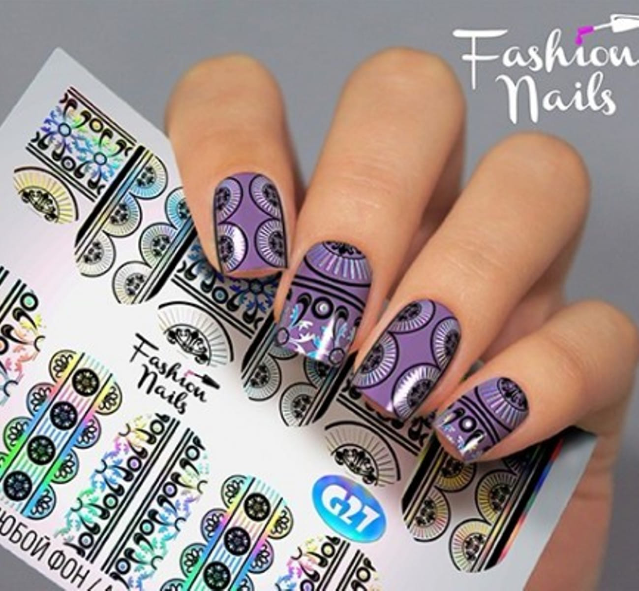 FASHION NAILS Water decal Galaxy 27, 1 pz. Istruzioni per l'uso: 1. Effettuare una preparazione standard della lamina ungueale.2. Selezionare il modello appropriato, tagliare l'immagine alla dimensione dell'unghia. 3. Applicare la base,polimerizzare. Applicare uno strato sottile del semipermanente bianco, se richiesto dal design del water decal. Polimerizzare. 4. Applicare uno strato sottile della base. Non polimerizzare. 5. Mettere il water decal su un disco di cotone inumidito con acqua calda (non fredda!) Per circa 10-15 secondi. Spostarlo trasferendo la pellicola sull'unghia. Raddrizzare la pellicola, tirando leggermente verso l'alto il bordo libero. Distendere con cura le pieghe, estraendo i resti di aria e acqua con un panno morbido, un pennello piatto o con le dita. Polimerizzare a tempo pieno. (UV - 2 min, led -30-60 sec). 6. Utilizzando la lima fine, dall'alto verso il basso, rimuovere delicatamente la pellicola in eccesso dal bordo libero dell'unghia. 7. Coprire 2 volte con il top coat, ben sigillando il bordo libero.
