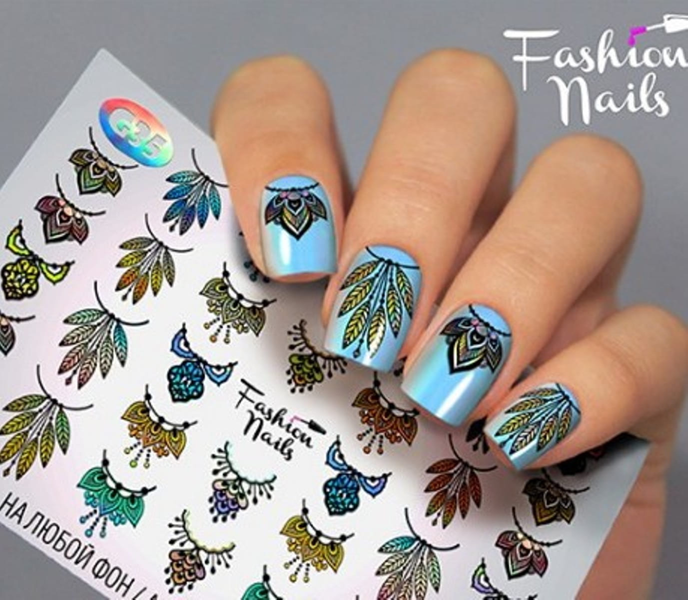FASHION NAILS Water decal Galaxy 35, 1 pz. Istruzioni per l'uso: 1. Effettuare una preparazione standard della lamina ungueale.2. Selezionare il modello appropriato, tagliare l'immagine alla dimensione dell'unghia. 3. Applicare la base,polimerizzare. Applicare uno strato sottile del semipermanente bianco, se richiesto dal design del water decal. Polimerizzare. 4. Applicare uno strato sottile della base. Non polimerizzare. 5. Mettere il water decal su un disco di cotone inumidito con acqua calda (non fredda!) Per circa 10-15 secondi. Spostarlo trasferendo la pellicola sull'unghia. Raddrizzare la pellicola, tirando leggermente verso l'alto il bordo libero. Distendere con cura le pieghe, estraendo i resti di aria e acqua con un panno morbido, un pennello piatto o con le dita. Polimerizzare a tempo pieno. (UV - 2 min, led -30-60 sec). 6. Utilizzando la lima fine, dall'alto verso il basso, rimuovere delicatamente la pellicola in eccesso dal bordo libero dell'unghia. 7. Coprire 2 volte con il top coat, ben sigillando il bordo libero.