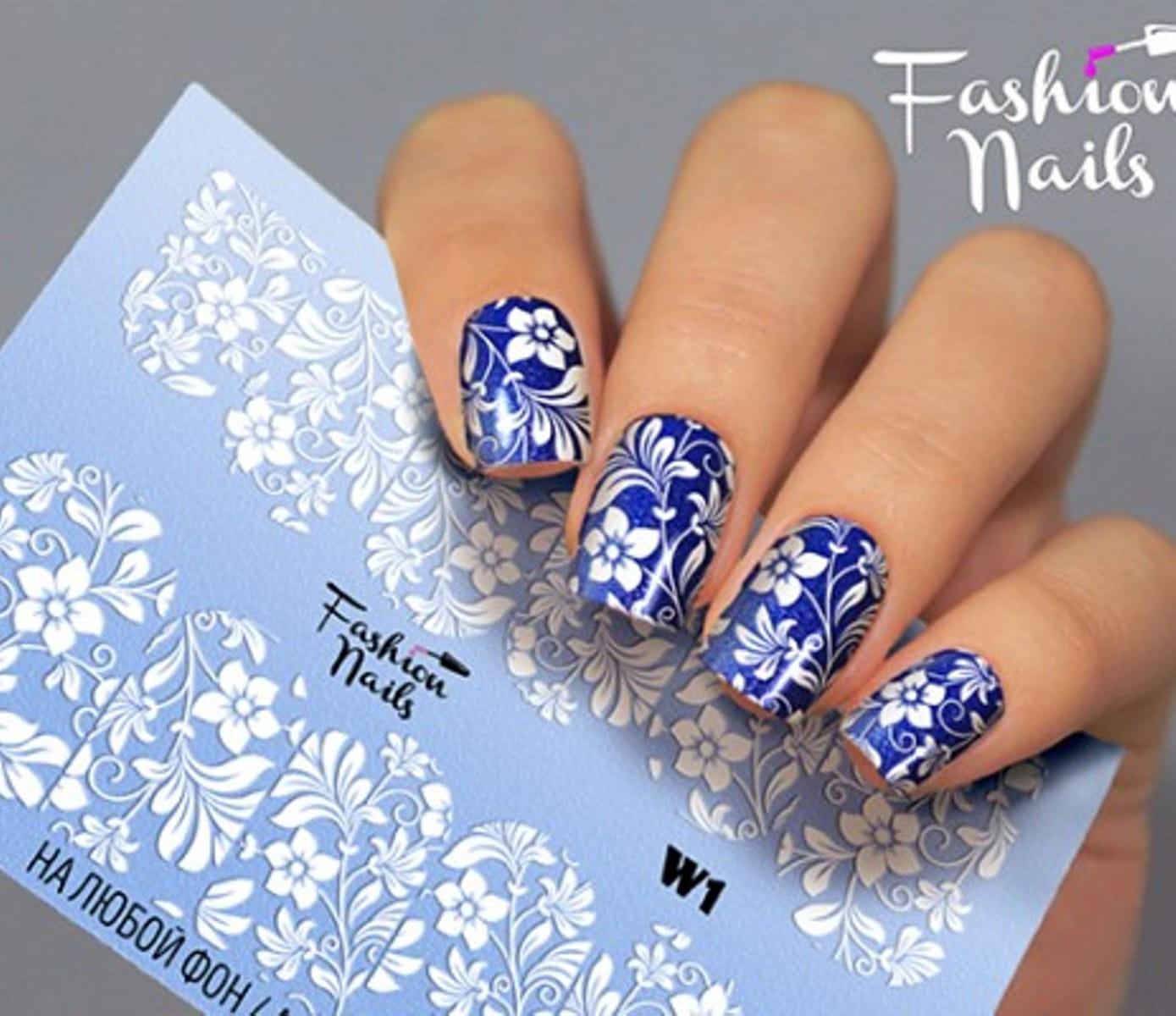 FASHION NAILS Water decal WHITE 1, 1 pz. Istruzioni per l'uso: 1. Effettuare una preparazione standard della lamina ungueale.2. Selezionare il modello appropriato, tagliare l'immagine alla dimensione dell'unghia. 3. Applicare la base,polimerizzare. Applicare uno strato sottile del semipermanente bianco, se richiesto dal design del water decal. Polimerizzare. 4. Applicare uno strato sottile della base. Non polimerizzare. 5. Mettere il water decal su un disco di cotone inumidito con acqua calda (non fredda!) Per circa 10-15 secondi. Spostarlo trasferendo la pellicola sull'unghia. Raddrizzare la pellicola, tirando leggermente verso l'alto il bordo libero. Distendere con cura le pieghe, estraendo i resti di aria e acqua con un panno morbido, un pennello piatto o con le dita. Polimerizzare a tempo pieno. (UV - 2 min, led -30-60 sec). 6. Utilizzando la lima fine, dall'alto verso il basso, rimuovere delicatamente la pellicola in eccesso dal bordo libero dell'unghia. 7. Coprire 2 volte con il top coat, ben sigillando il bordo libero.