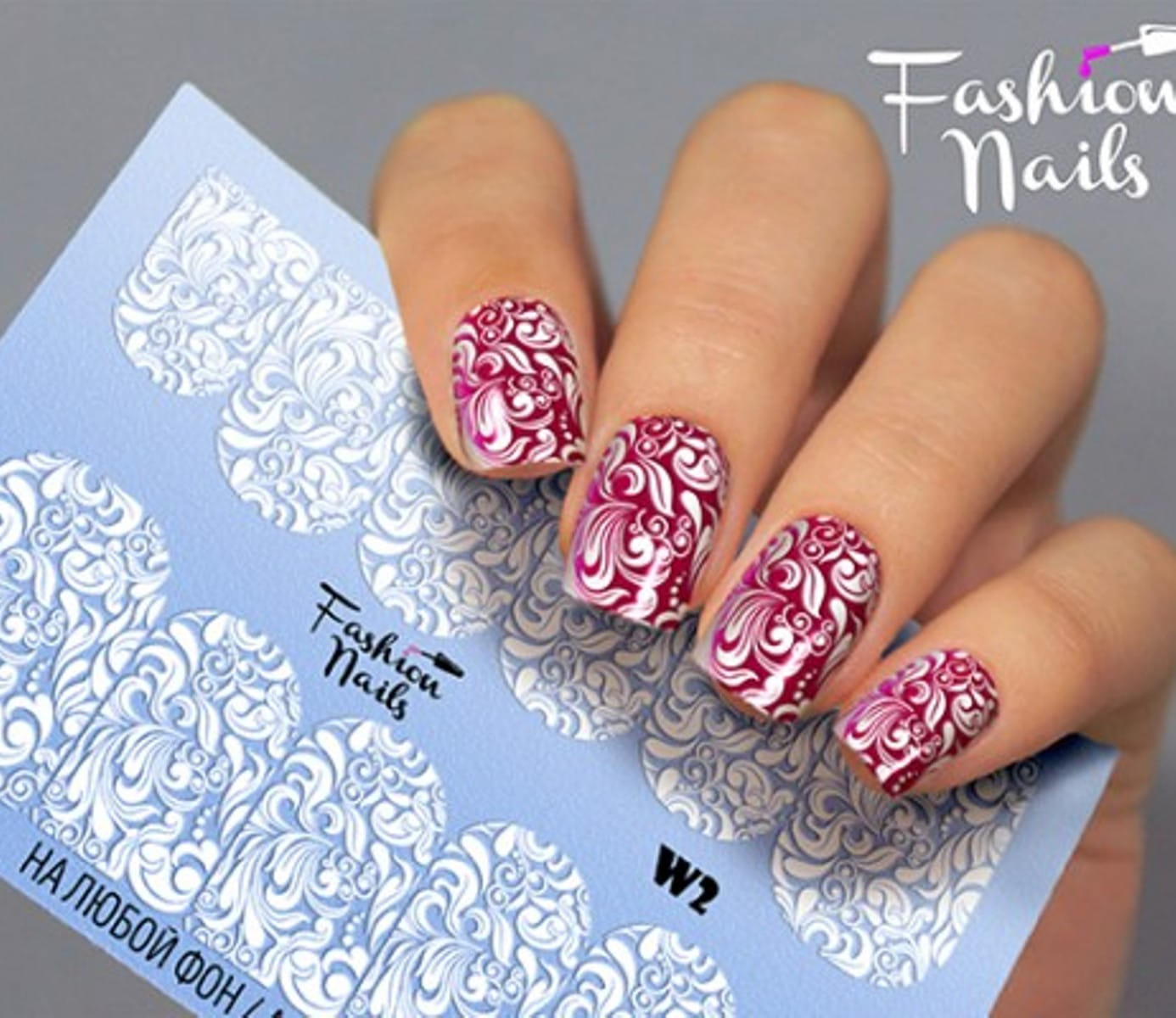FASHION NAILS Water decal WHITE 2, 1 pz. Istruzioni per l'uso: 1. Effettuare una preparazione standard della lamina ungueale.2. Selezionare il modello appropriato, tagliare l'immagine alla dimensione dell'unghia. 3. Applicare la base,polimerizzare. Applicare uno strato sottile del semipermanente bianco, se richiesto dal design del water decal. Polimerizzare. 4. Applicare uno strato sottile della base. Non polimerizzare. 5. Mettere il water decal su un disco di cotone inumidito con acqua calda (non fredda!) Per circa 10-15 secondi. Spostarlo trasferendo la pellicola sull'unghia. Raddrizzare la pellicola, tirando leggermente verso l'alto il bordo libero. Distendere con cura le pieghe, estraendo i resti di aria e acqua con un panno morbido, un pennello piatto o con le dita. Polimerizzare a tempo pieno. (UV - 2 min, led -30-60 sec). 6. Utilizzando la lima fine, dall'alto verso il basso, rimuovere delicatamente la pellicola in eccesso dal bordo libero dell'unghia. 7. Coprire 2 volte con il top coat, ben sigillando il bordo libero.