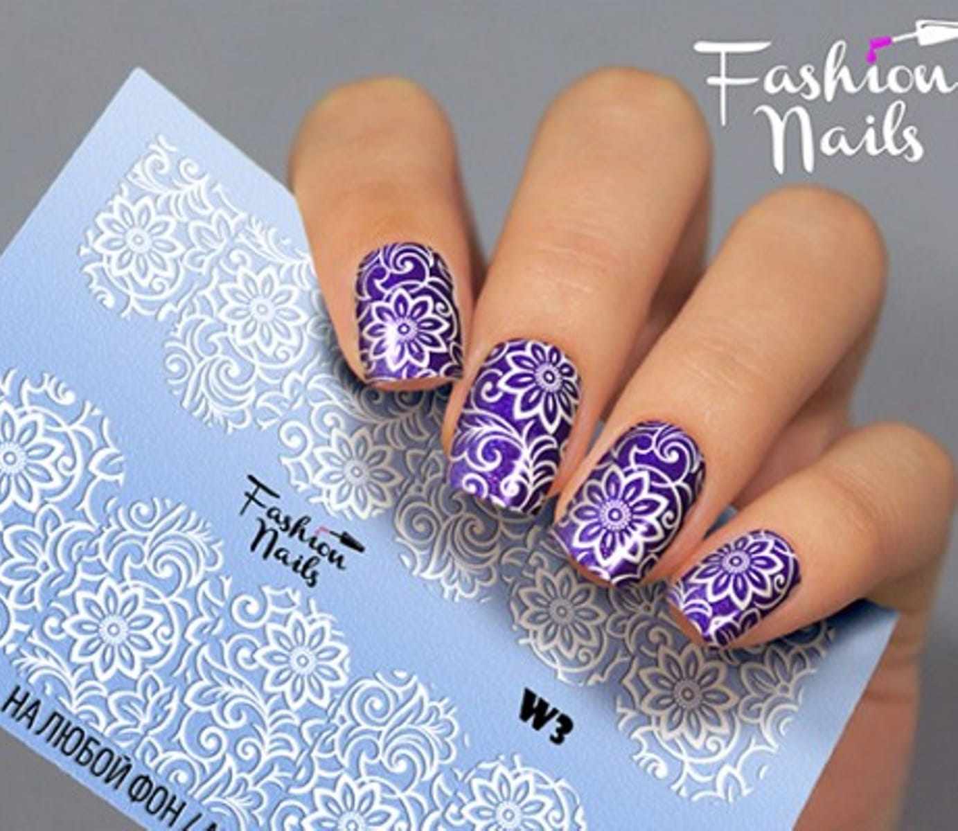 FASHION NAILS Water decal WHITE 3, 1 pz. Istruzioni per l'uso: 1. Effettuare una preparazione standard della lamina ungueale.2. Selezionare il modello appropriato, tagliare l'immagine alla dimensione dell'unghia. 3. Applicare la base,polimerizzare. Applicare uno strato sottile del semipermanente bianco, se richiesto dal design del water decal. Polimerizzare. 4. Applicare uno strato sottile della base. Non polimerizzare. 5. Mettere il water decal su un disco di cotone inumidito con acqua calda (non fredda!) Per circa 10-15 secondi. Spostarlo trasferendo la pellicola sull'unghia. Raddrizzare la pellicola, tirando leggermente verso l'alto il bordo libero. Distendere con cura le pieghe, estraendo i resti di aria e acqua con un panno morbido, un pennello piatto o con le dita. Polimerizzare a tempo pieno. (UV - 2 min, led -30-60 sec). 6. Utilizzando la lima fine, dall'alto verso il basso, rimuovere delicatamente la pellicola in eccesso dal bordo libero dell'unghia. 7. Coprire 2 volte con il top coat, ben sigillando il bordo libero.
