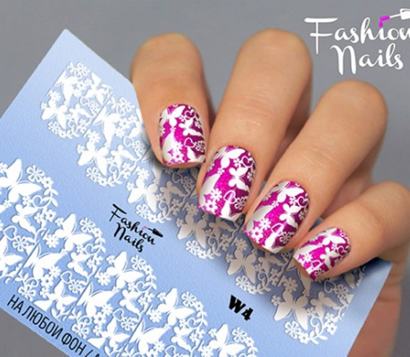 FASHION NAILS Water decal WHITE 4, 1 pz. Istruzioni per l'uso: 1. Effettuare una preparazione standard della lamina ungueale.2. Selezionare il modello appropriato, tagliare l'immagine alla dimensione dell'unghia. 3. Applicare la base,polimerizzare. Applicare uno strato sottile del semipermanente bianco, se richiesto dal design del water decal. Polimerizzare. 4. Applicare uno strato sottile della base. Non polimerizzare. 5. Mettere il water decal su un disco di cotone inumidito con acqua calda (non fredda!) Per circa 10-15 secondi. Spostarlo trasferendo la pellicola sull'unghia. Raddrizzare la pellicola, tirando leggermente verso l'alto il bordo libero. Distendere con cura le pieghe, estraendo i resti di aria e acqua con un panno morbido, un pennello piatto o con le dita. Polimerizzare a tempo pieno. (UV - 2 min, led -30-60 sec). 6. Utilizzando la lima fine, dall'alto verso il basso, rimuovere delicatamente la pellicola in eccesso dal bordo libero dell'unghia. 7. Coprire 2 volte con il top coat, ben sigillando il bordo libero.