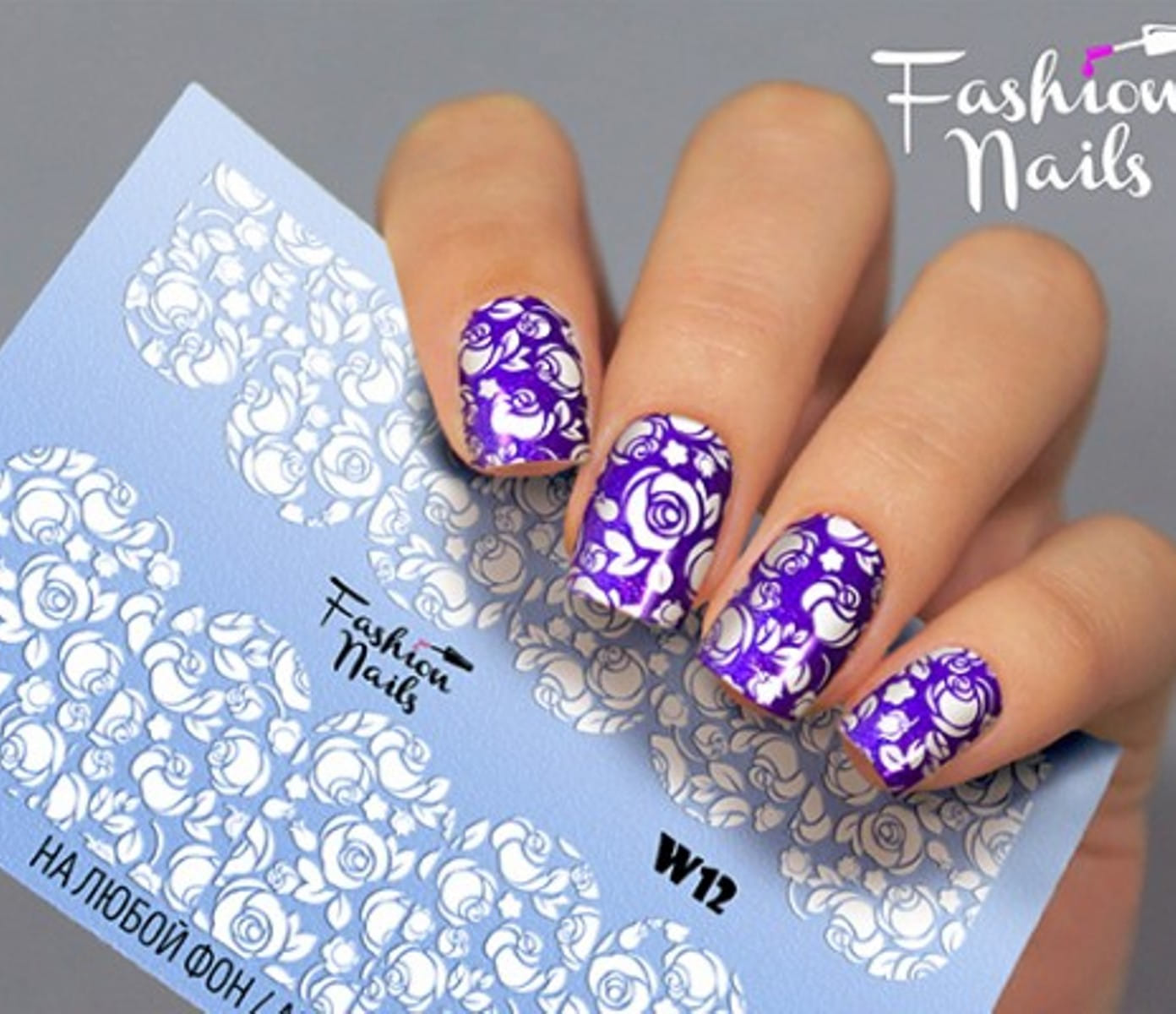 FASHION NAILS Water decal WHITE 12, 1 pz. Istruzioni per l'uso: 1. Effettuare una preparazione standard della lamina ungueale.2. Selezionare il modello appropriato, tagliare l'immagine alla dimensione dell'unghia. 3. Applicare la base,polimerizzare. Applicare uno strato sottile del semipermanente bianco, se richiesto dal design del water decal. Polimerizzare. 4. Applicare uno strato sottile della base. Non polimerizzare. 5. Mettere il water decal su un disco di cotone inumidito con acqua calda (non fredda!) Per circa 10-15 secondi. Spostarlo trasferendo la pellicola sull'unghia. Raddrizzare la pellicola, tirando leggermente verso l'alto il bordo libero. Distendere con cura le pieghe, estraendo i resti di aria e acqua con un panno morbido, un pennello piatto o con le dita. Polimerizzare a tempo pieno. (UV - 2 min, led -30-60 sec). 6. Utilizzando la lima fine, dall'alto verso il basso, rimuovere delicatamente la pellicola in eccesso dal bordo libero dell'unghia. 7. Coprire 2 volte con il top coat, ben sigillando il bordo libero.