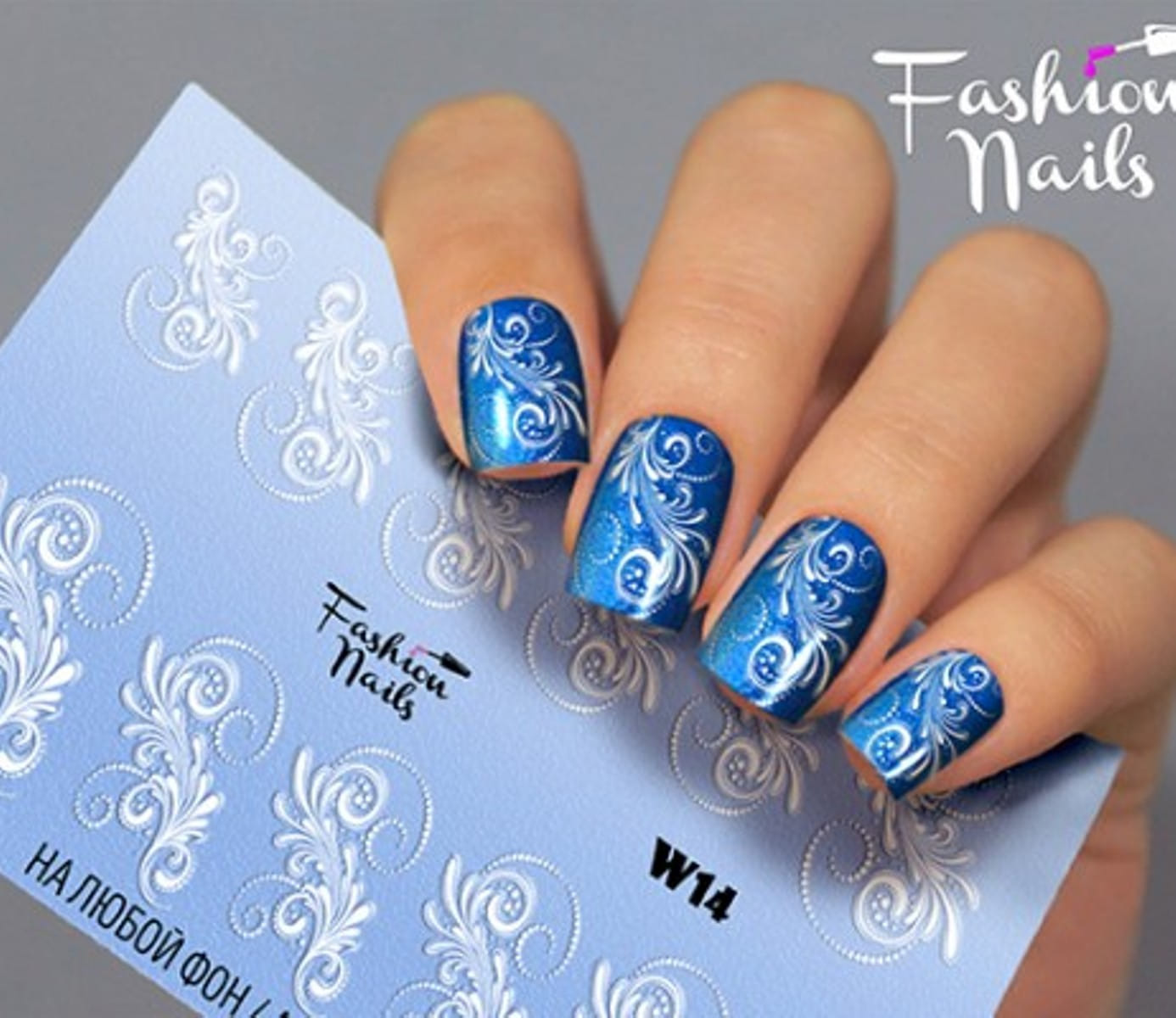 FASHION NAILS Water decal WHITE 14, 1 pz. Istruzioni per l'uso: 1. Effettuare una preparazione standard della lamina ungueale.2. Selezionare il modello appropriato, tagliare l'immagine alla dimensione dell'unghia. 3. Applicare la base,polimerizzare. Applicare uno strato sottile del semipermanente bianco, se richiesto dal design del water decal. Polimerizzare. 4. Applicare uno strato sottile della base. Non polimerizzare. 5. Mettere il water decal su un disco di cotone inumidito con acqua calda (non fredda!) Per circa 10-15 secondi. Spostarlo trasferendo la pellicola sull'unghia. Raddrizzare la pellicola, tirando leggermente verso l'alto il bordo libero. Distendere con cura le pieghe, estraendo i resti di aria e acqua con un panno morbido, un pennello piatto o con le dita. Polimerizzare a tempo pieno. (UV - 2 min, led -30-60 sec). 6. Utilizzando la lima fine, dall'alto verso il basso, rimuovere delicatamente la pellicola in eccesso dal bordo libero dell'unghia. 7. Coprire 2 volte con il top coat, ben sigillando il bordo libero.