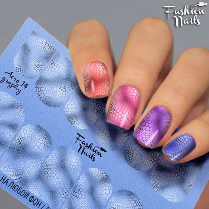 FASHION NAILS Water decal AEROGRAPHY 14, 1 pz. Istruzioni per l'uso: 1. Effettuare una preparazione standard della lamina ungueale.2. Selezionare il modello appropriato, tagliare l'immagine alla dimensione dell'unghia. 3. Applicare la base,polimerizzare. Applicare uno strato sottile del semipermanente bianco, se richiesto dal design del water decal. Polimerizzare. 4. Applicare uno strato sottile della base. Non polimerizzare. 5. Mettere il water decal su un disco di cotone inumidito con acqua calda (non fredda!) Per circa 10-15 secondi. Spostarlo trasferendo la pellicola sull'unghia. Raddrizzare la pellicola, tirando leggermente verso l'alto il bordo libero. Distendere con cura le pieghe, estraendo i resti di aria e acqua con un panno morbido, un pennello piatto o con le dita. Polimerizzare a tempo pieno. (UV - 2 min, led -30-60 sec). 6. Utilizzando la lima fine, dall'alto verso il basso, rimuovere delicatamente la pellicola in eccesso dal bordo libero dell'unghia. 7. Coprire 2 volte con il top coat, ben sigillando il bordo libero.