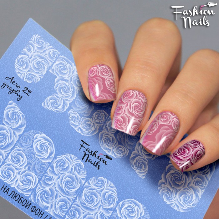 FASHION NAILS Water decal AEROGRAPHY 22, 1 pz. Istruzioni per l'uso: 1. Effettuare una preparazione standard della lamina ungueale.2. Selezionare il modello appropriato, tagliare l'immagine alla dimensione dell'unghia. 3. Applicare la base,polimerizzare. Applicare uno strato sottile del semipermanente bianco, se richiesto dal design del water decal. Polimerizzare. 4. Applicare uno strato sottile della base. Non polimerizzare. 5. Mettere il water decal su un disco di cotone inumidito con acqua calda (non fredda!) Per circa 10-15 secondi. Spostarlo trasferendo la pellicola sull'unghia. Raddrizzare la pellicola, tirando leggermente verso l'alto il bordo libero. Distendere con cura le pieghe, estraendo i resti di aria e acqua con un panno morbido, un pennello piatto o con le dita. Polimerizzare a tempo pieno. (UV - 2 min, led -30-60 sec). 6. Utilizzando la lima fine, dall'alto verso il basso, rimuovere delicatamente la pellicola in eccesso dal bordo libero dell'unghia. 7. Coprire 2 volte con il top coat, ben sigillando il bordo libero.