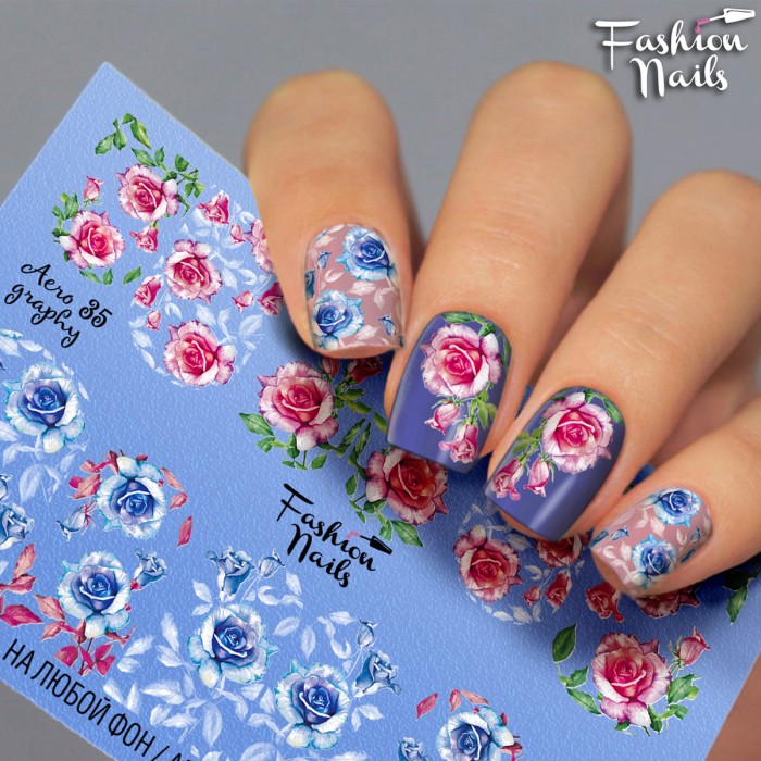 FASHION NAILS Water decal AEROGRAPHY 35, 1 pz. Istruzioni per l'uso: 1. Effettuare una preparazione standard della lamina ungueale.2. Selezionare il modello appropriato, tagliare l'immagine alla dimensione dell'unghia. 3. Applicare la base,polimerizzare. Applicare uno strato sottile del semipermanente bianco, se richiesto dal design del water decal. Polimerizzare. 4. Applicare uno strato sottile della base. Non polimerizzare. 5. Mettere il water decal su un disco di cotone inumidito con acqua calda (non fredda!) Per circa 10-15 secondi. Spostarlo trasferendo la pellicola sull'unghia. Raddrizzare la pellicola, tirando leggermente verso l'alto il bordo libero. Distendere con cura le pieghe, estraendo i resti di aria e acqua con un panno morbido, un pennello piatto o con le dita. Polimerizzare a tempo pieno. (UV - 2 min, led -30-60 sec). 6. Utilizzando la lima fine, dall'alto verso il basso, rimuovere delicatamente la pellicola in eccesso dal bordo libero dell'unghia. 7. Coprire 2 volte con il top coat, ben sigillando il bordo libero.