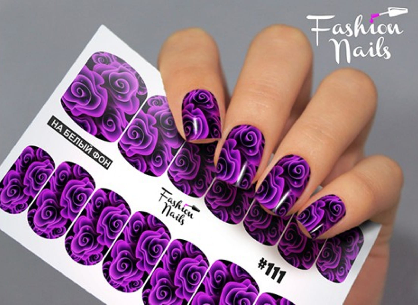 FASHION NAILS Water decal #111, 1 pz. Istruzioni per l'uso: 1. Effettuare una preparazione standard della lamina ungueale.2. Selezionare il modello appropriato, tagliare l'immagine alla dimensione dell'unghia. 3. Applicare la base,polimerizzare. Applicare uno strato sottile del semipermanente bianco, se richiesto dal design del water decal. Polimerizzare. 4. Applicare uno strato sottile della base. Non polimerizzare. 5. Mettere il water decal su un disco di cotone inumidito con acqua calda (non fredda!) Per circa 10-15 secondi. Spostarlo trasferendo la pellicola sull'unghia. Raddrizzare la pellicola, tirando leggermente verso l'alto il bordo libero. Distendere con cura le pieghe, estraendo i resti di aria e acqua con un panno morbido, un pennello piatto o con le dita. Polimerizzare a tempo pieno. (UV - 2 min, led -30-60 sec). 6. Utilizzando la lima fine, dall'alto verso il basso, rimuovere delicatamente la pellicola in eccesso dal bordo libero dell'unghia. 7. Coprire 2 volte con il top coat, ben sigillando il bordo libero.