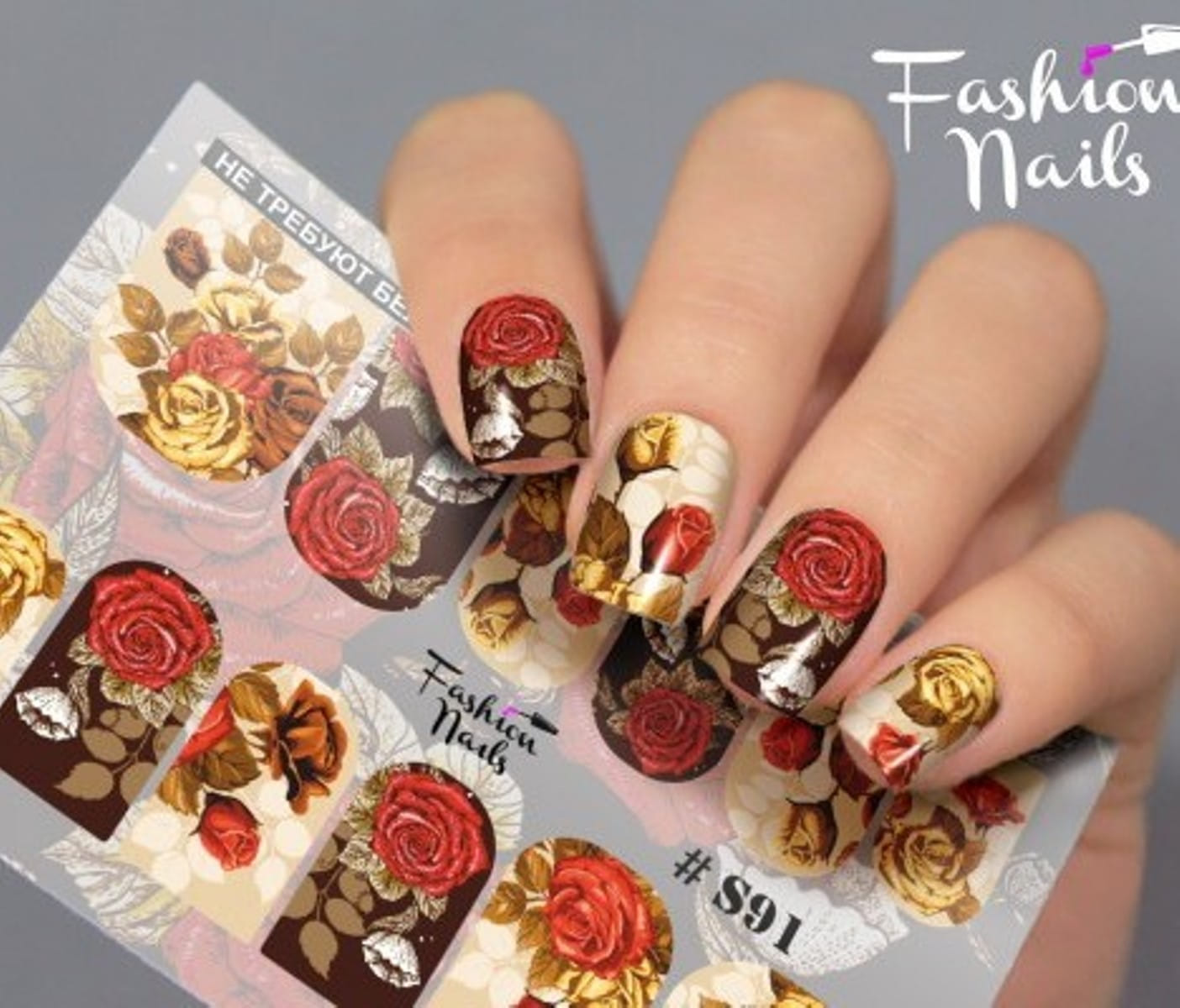 FASHION NAILS Water decal Stretch #091, 1 pz. Istruzioni per l'uso: 1. Effettuare una preparazione standard della lamina ungueale.2. Selezionare il modello appropriato, tagliare l'immagine alla dimensione dell'unghia. 3. Applicare la base,polimerizzare. Applicare uno strato sottile del semipermanente bianco, se richiesto dal design del water decal. Polimerizzare. 4. Applicare uno strato sottile della base. Non polimerizzare. 5. Mettere il water decal su un disco di cotone inumidito con acqua calda (non fredda!) Per circa 10-15 secondi. Spostarlo trasferendo la pellicola sull'unghia. Raddrizzare la pellicola, tirando leggermente verso l'alto il bordo libero. Distendere con cura le pieghe, estraendo i resti di aria e acqua con un panno morbido, un pennello piatto o con le dita. Polimerizzare a tempo pieno. (UV - 2 min, led -30-60 sec). 6. Utilizzando la lima fine, dall'alto verso il basso, rimuovere delicatamente la pellicola in eccesso dal bordo libero dell'unghia. 7. Coprire 2 volte con il top coat, ben sigillando il bordo libero.