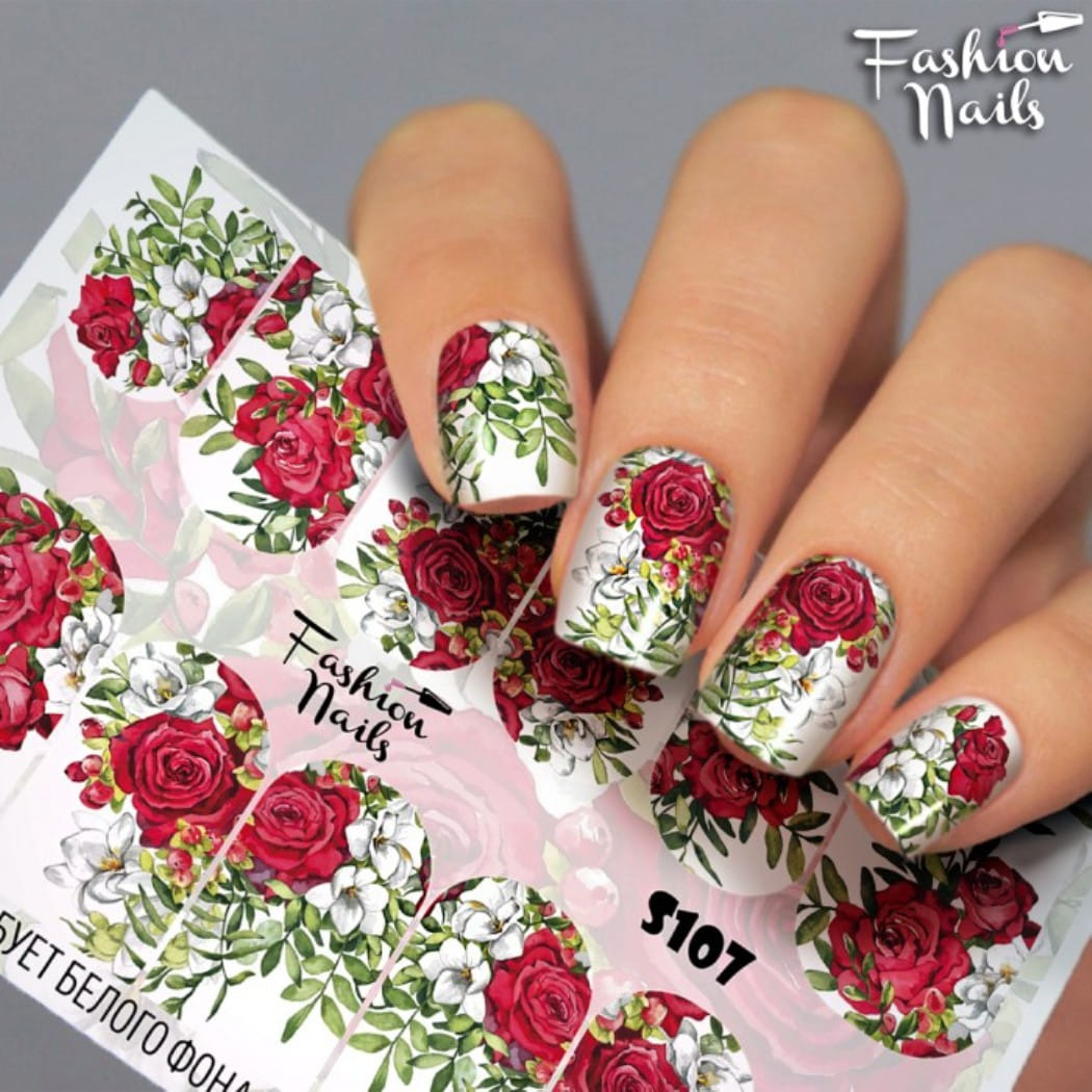 FASHION NAILS Water decal Stretch #107, 1 pz. Istruzioni per l'uso: 1. Effettuare una preparazione standard della lamina ungueale.2. Selezionare il modello appropriato, tagliare l'immagine alla dimensione dell'unghia. 3. Applicare la base,polimerizzare. Applicare uno strato sottile del semipermanente bianco, se richiesto dal design del water decal. Polimerizzare. 4. Applicare uno strato sottile della base. Non polimerizzare. 5. Mettere il water decal su un disco di cotone inumidito con acqua calda (non fredda!) Per circa 10-15 secondi. Spostarlo trasferendo la pellicola sull'unghia. Raddrizzare la pellicola, tirando leggermente verso l'alto il bordo libero. Distendere con cura le pieghe, estraendo i resti di aria e acqua con un panno morbido, un pennello piatto o con le dita. Polimerizzare a tempo pieno. (UV - 2 min, led -30-60 sec). 6. Utilizzando la lima fine, dall'alto verso il basso, rimuovere delicatamente la pellicola in eccesso dal bordo libero dell'unghia. 7. Coprire 2 volte con il top coat, ben sigillando il bordo libero.